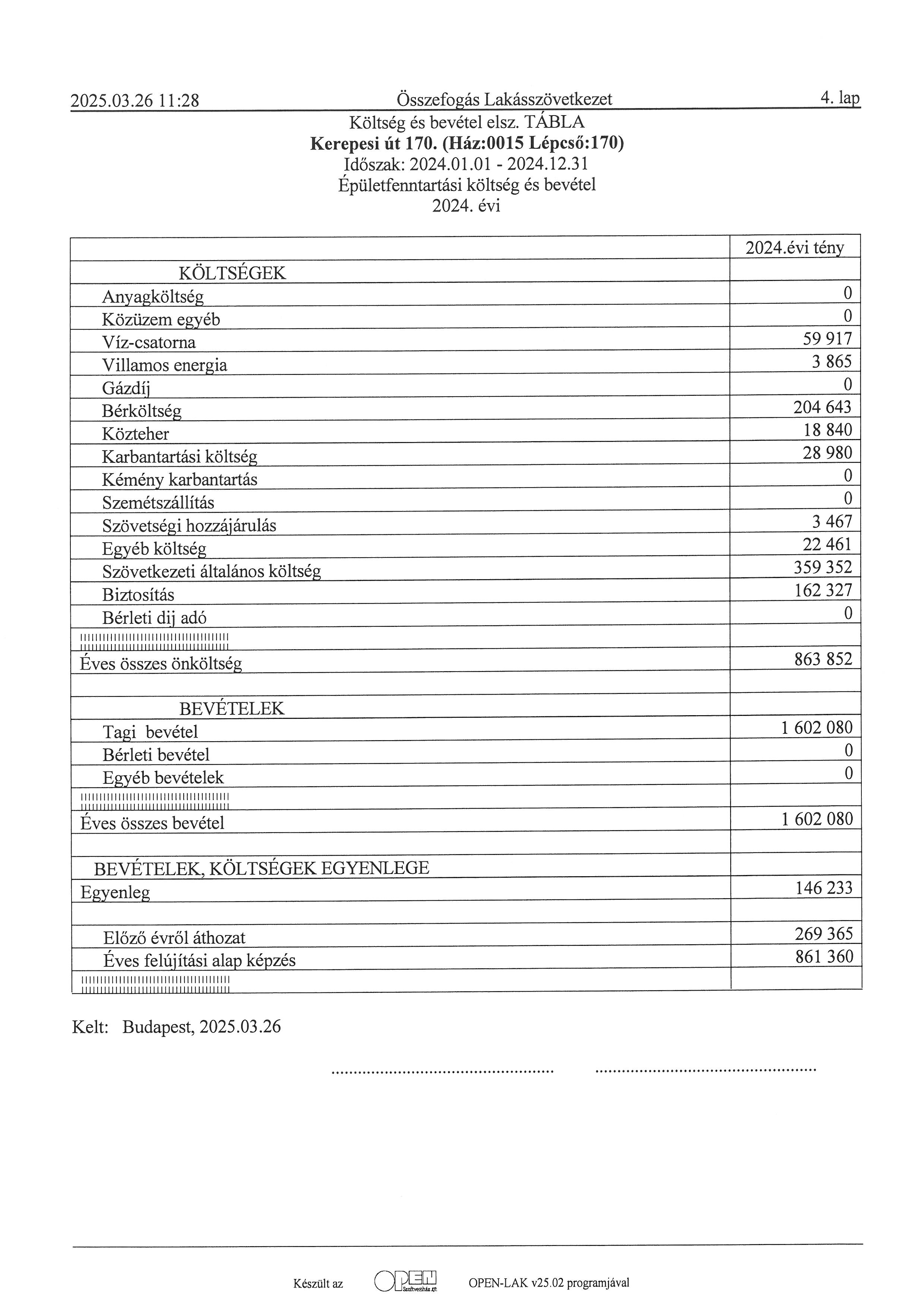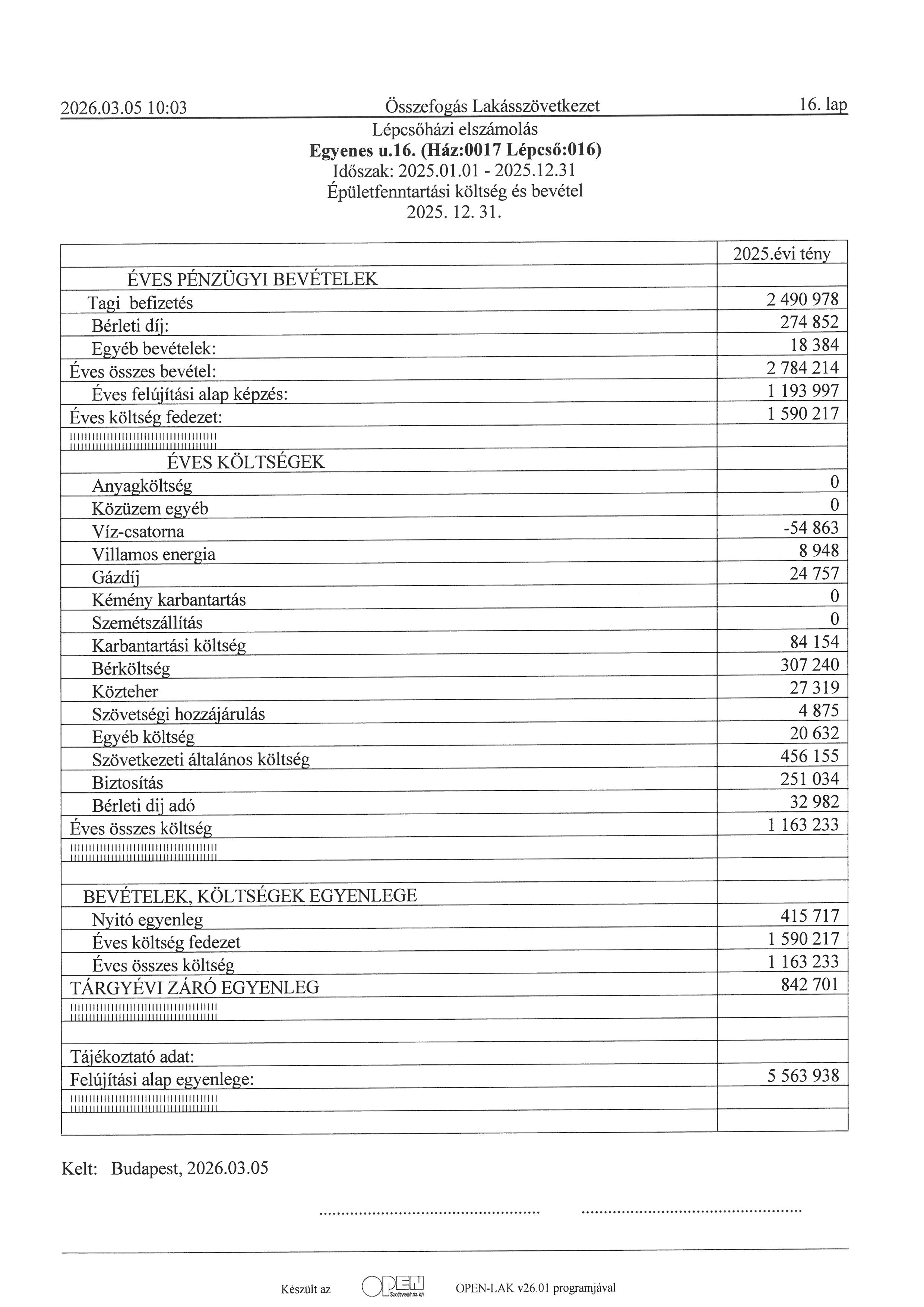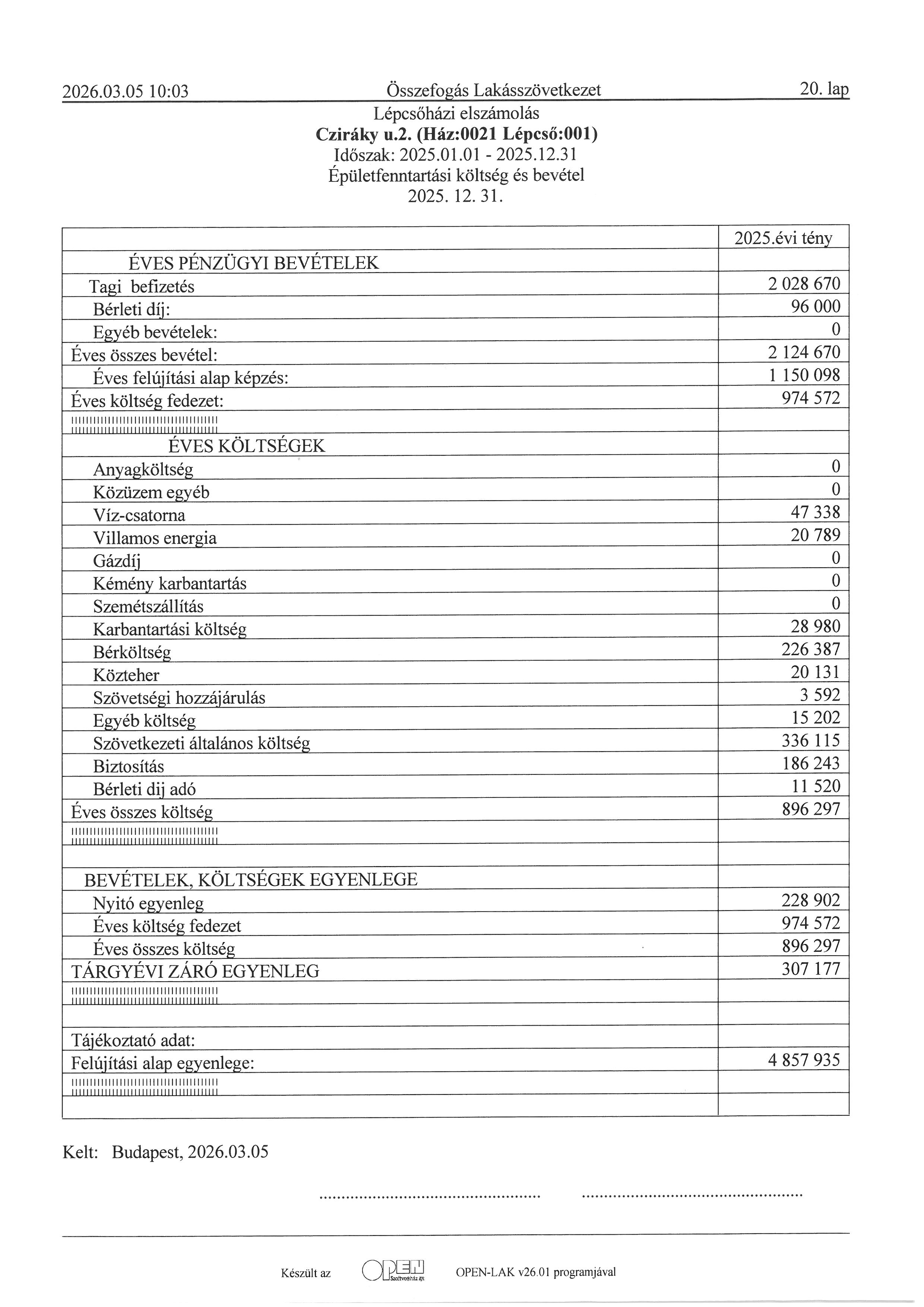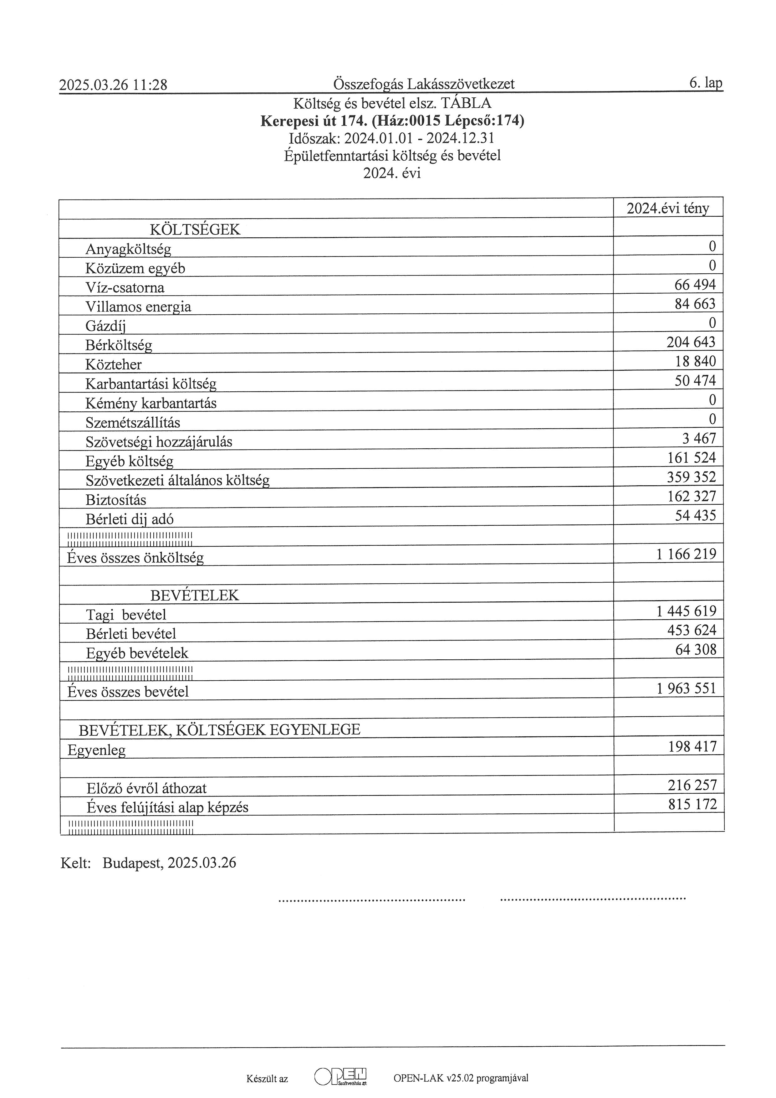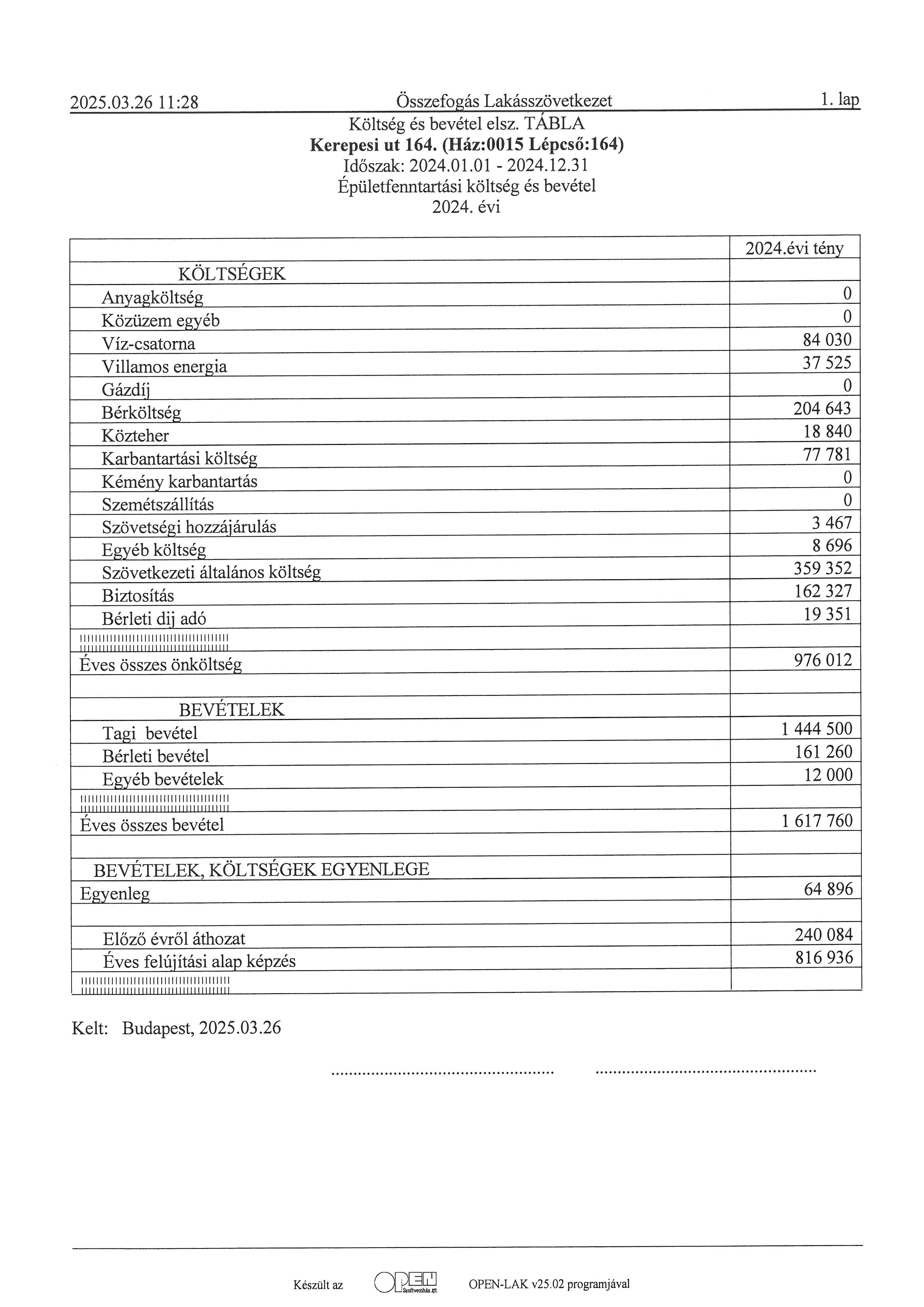 lépcsőházi elszámolás